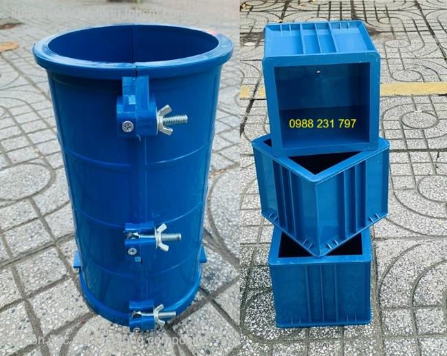 KHUÔN ĐÚC MẪU BÊ TÔNG BẰNG COMPOSITE LÀ DỤNG CỤ DÙNG ĐÚC MẪU KIỂM TRA CHẤT LƯỢNG BÊ TÔNG TẠI CÔNG TRƯỜNG, KHUÔN ĐÚC MẪU BÊ TÔNG BẰNG THÉP VÀ BẰNG NHỰA có kích thước cụ thể là 15x15x15cm hay ( 150x150x150 mm ) D150xH300mm ( D15x30cm ),khuôn được sản xuất trực tiếp tại TP. HCM nên có giá tương đối rẻ so với các loại khuôn nhựa nhập khác.